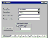 在屏幕上输入螺纹类型的基本信息,马上就可显示出所需尺寸画面,如:螺纹类型、级别、公 称直径、每英寸牙数。一旦有计算结果,程序底部的标题栏允许选择几个类型计算资料,包括产品螺纹、环规、塞规设置、塞规或GAGEMAKER 螺纹中径规的尺寸和公差。